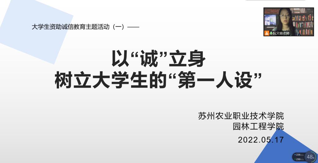 為增強青年大學(xué)生的使命意識和責(zé)任擔(dān)當(dāng),培養(yǎng)受資助學(xué)生的自立自強、知恩感恩、誠信立身的良好品質(zhì),園林工程學(xué)院5月10日至5月20日舉辦了誠信教育主題活動。