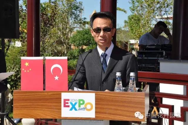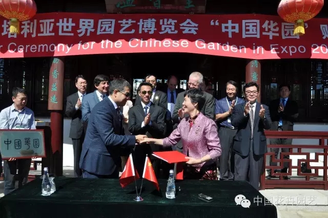 當地時間9月29日,2016安塔利亞世園會“中國華園”贈園儀式在土耳其安塔利亞舉行。中國駐土耳其大使郁紅陽,駐土耳其伊茲密爾總領事劉增先,2016安塔利亞世園會中國館政府代表、中國花卉協會秘書長劉紅,中國花卉協會副秘書長、中國生態文化協會副秘書長彭紅明,2016安塔利亞世園會政府總代表埃爾多安·闊克、秘書長費拉特·艾薩克,國際園藝生產者協會主席伯納德·歐斯特羅姆、副主席張啟翔、副主席提姆·霍華德、秘書長提姆·布萊爾克里夫等出席贈園儀式。中國駐土耳其大使館、駐土耳其伊茲密爾領事館代表,中國花卉協會以及揚州市、唐山市、北京市等地有關領導和嘉賓,2016安塔利亞世園會組委會、執委會官員,國際園藝生產者協會各成員組織,在土華人華僑代表,新華社、央視中文國際臺、光明日報等駐土新聞媒體以及土耳其當地媒體,共100余人出席贈園儀式。儀式由中國駐土耳其大使館參贊丁小紅主持。儀式上,劉紅與費拉特·艾薩克共同簽署了“中國華園”交接備忘錄。郁紅陽向費拉特·艾薩克贈送了“中國華園”匾額。