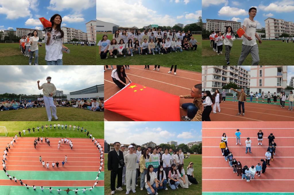 國旗下,師生協作追光逐影,各班級拼湊出“十一”、“國慶”等醒目造型,用鏡頭記錄樸實真切的“中國熱愛”,以此表達對祖國的熱愛與祝福;田徑場,學生們響應倡議走出宿舍、走向操場,用腳步軌跡書寫出“中國”、“2022”、“73”等樣式,慶祝中華人民共和國成立73周年;綠地上,同學們互相分享開學以來的所思所想、錦囊妙計,主動進行才藝表演,現場氣氛活躍,展現園林青年以愛國之情鑄青春之志的信心。