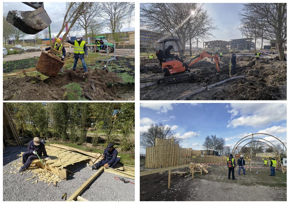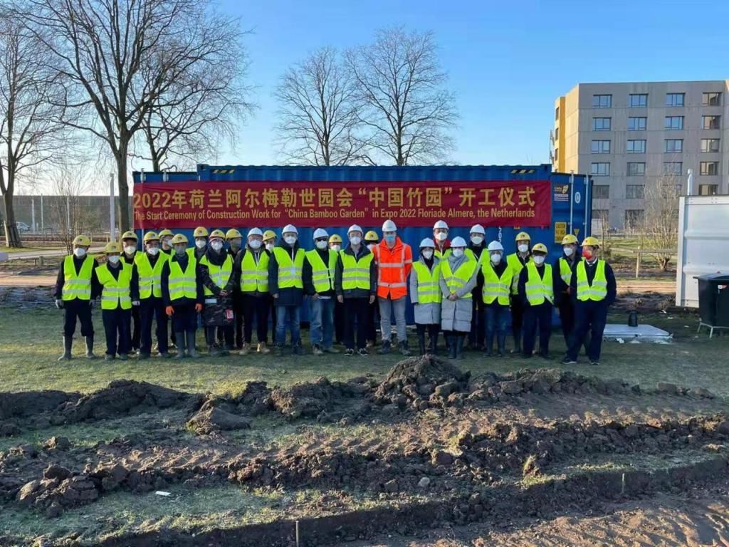 2022年1月6日,我校被中國(guó)花卉協(xié)會(huì)確定為施工布展養(yǎng)護(hù)總負(fù)責(zé)單位。學(xué)校高度重視本次參展工作,成立了2022荷蘭阿爾梅勒世界園藝博覽會(huì)“中國(guó)竹園”建設(shè)項(xiàng)目工作領(lǐng)導(dǎo)小組,黨委書記傅兵和校長(zhǎng)蘇士利親自擔(dān)任組長(zhǎng),黨委委員、副校長(zhǎng)周軍擔(dān)任領(lǐng)導(dǎo)小組辦公室主任,具體全面統(tǒng)籌協(xié)調(diào)指導(dǎo)建設(shè)工作。學(xué)校選派了7名骨干教師及17名合作企業(yè)人員共同組成建設(shè)團(tuán)隊(duì)赴荷蘭進(jìn)行建設(shè)工作。面對(duì)荷蘭國(guó)內(nèi)新冠疫情嚴(yán)重,施工布展建設(shè)工期緊張、任務(wù)繁重等眾多不利因素,建設(shè)團(tuán)隊(duì)在荷蘭施工現(xiàn)場(chǎng)成立2022荷蘭阿爾梅勒世界園藝博覽會(huì)“中國(guó)竹園”建設(shè)項(xiàng)目臨時(shí)黨支部,園林工程學(xué)院副院長(zhǎng)鞠鵬杰被選為支部書記,充分發(fā)揮黨支部的戰(zhàn)斗堡壘作用和黨員的先鋒模范作用,以支部引領(lǐng)黨員,以黨員促進(jìn)建設(shè)。建設(shè)團(tuán)隊(duì)出發(fā)前,學(xué)校黨委、行政召開專題會(huì)議進(jìn)行反復(fù)研討,黨委書記傅兵、校長(zhǎng)蘇士利多次關(guān)心指導(dǎo)行前準(zhǔn)備及建設(shè)工作。