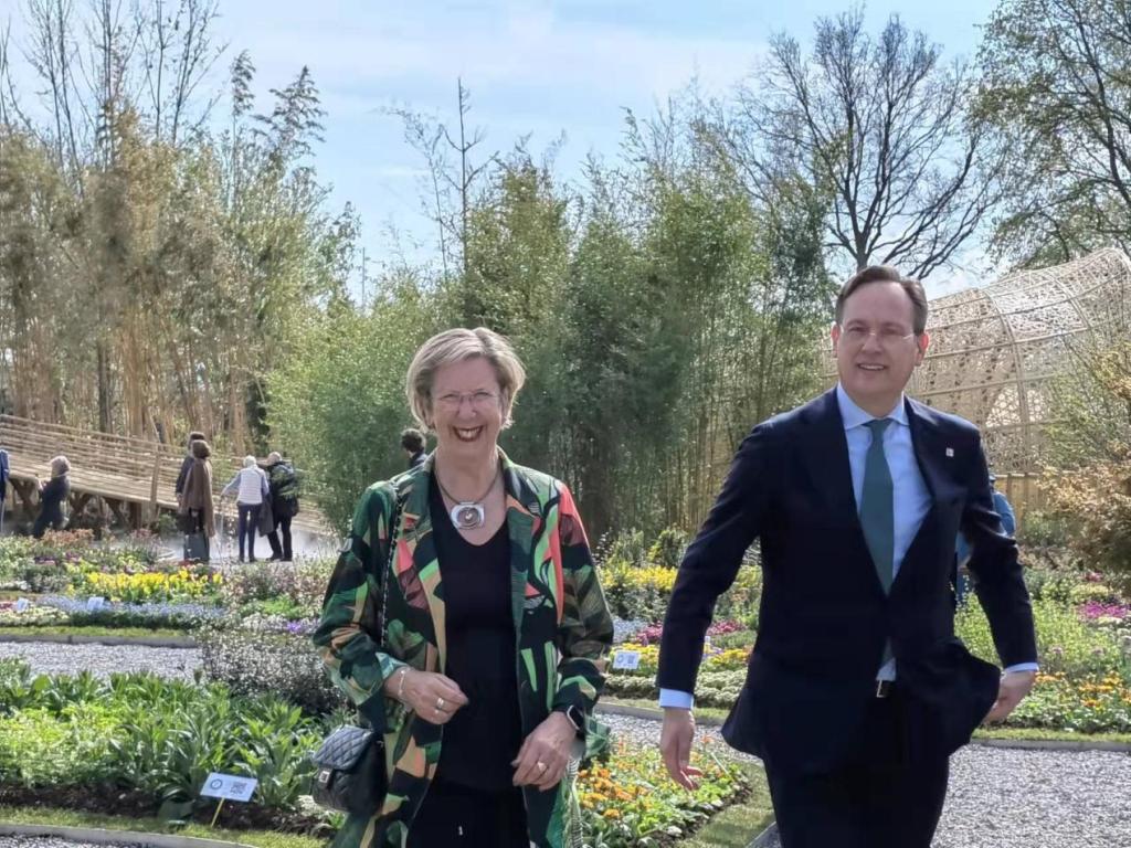 中華人民共和國(guó)駐荷蘭王國(guó)大使談踐陪同荷蘭弗里佛蘭省省長(zhǎng)韋貝克等參觀“中國(guó)竹園”
