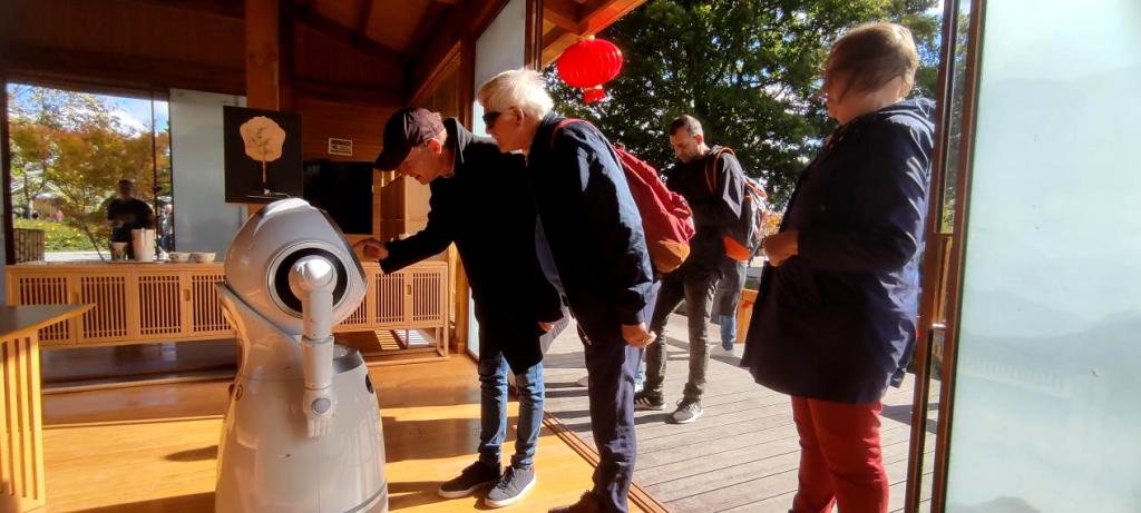 游客在“中國(guó)竹園”和機(jī)器人互動(dòng)