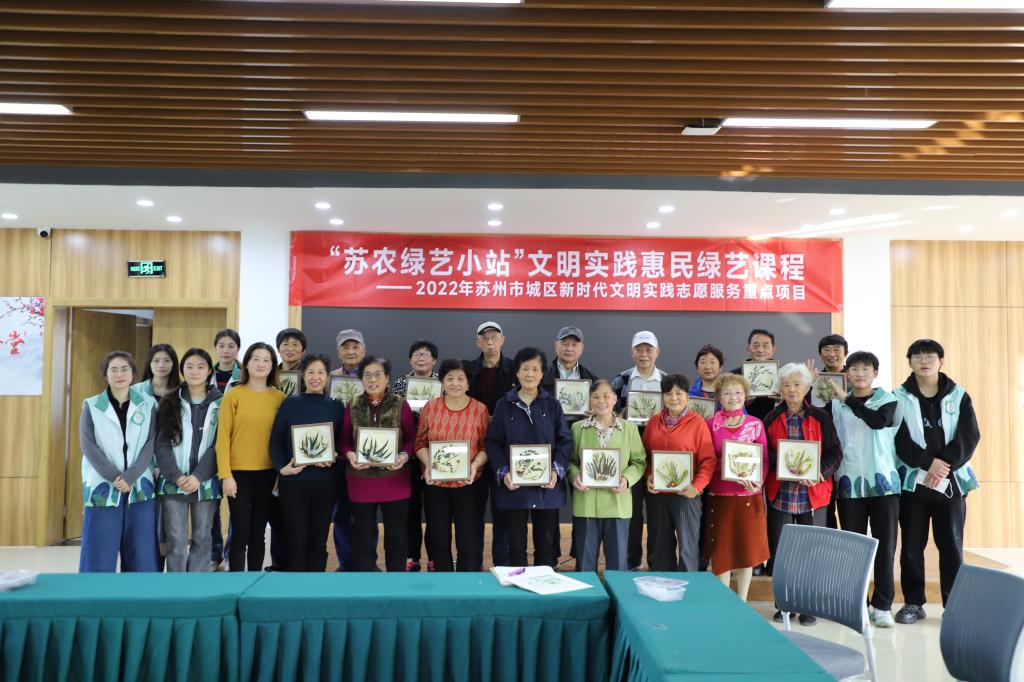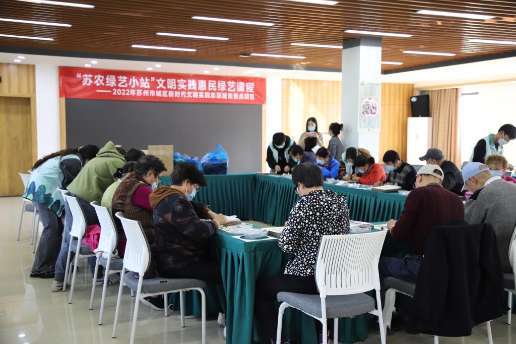 “蘇農綠藝小站”文明實踐項目是2022年蘇州市城區新時代文明實踐志愿服務重點項目。項目旨在為姑蘇區塑造20個“綠藝小站”,針對不同社區、人群、主題、時節設置各類綠藝課程,提升生活環境的顏值,助力文明實踐惠民工程落實落細。