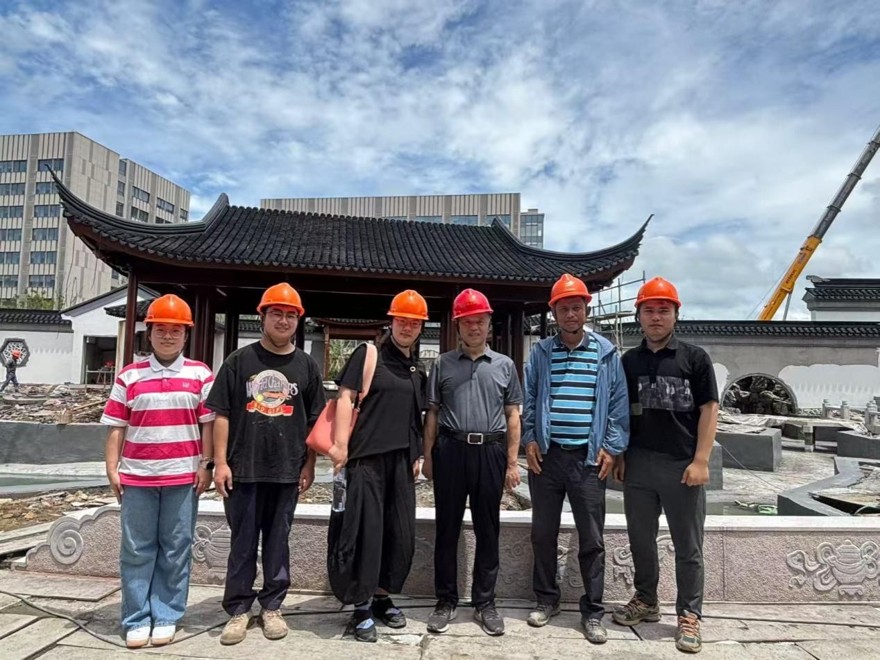 為深化產教融合,精準對接古建行業的人才需求,并拓展學生的實習與就業渠道,2025年6月14日,風景園林設計教研室主任鄭玥、古建筑工程技術專業教師夏順成、學生黨支部書記謝君娜以及學生代表,與國家級非物質文化遺產“香山幫傳統建筑營造技藝”的傳承單位,同時也是全國園林綠化行業產教融合共同體單位——蘇州香山古建園林工程有限公司的總經理孫小青,一同前往南京大學蘇州西校區的古典庭院建設項目現場,開展訪企拓崗專項調研活動。