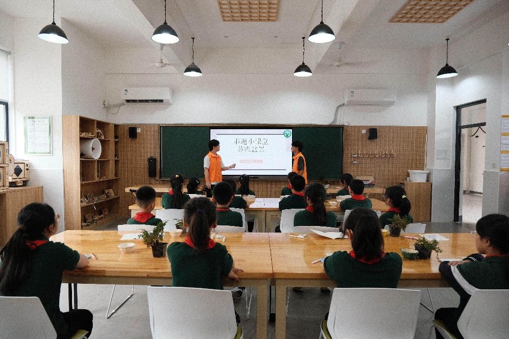 為弘揚中華優(yōu)秀傳統(tǒng)文化,播撒非遺傳承的種子,6月23日下午,園林工程學院青年志愿者協(xié)會走進尚德實驗小學校,為“小小匠”們帶來了一場別開生面的非遺小課堂,帶領(lǐng)他們領(lǐng)略蘇派盆景的獨特魅力。
