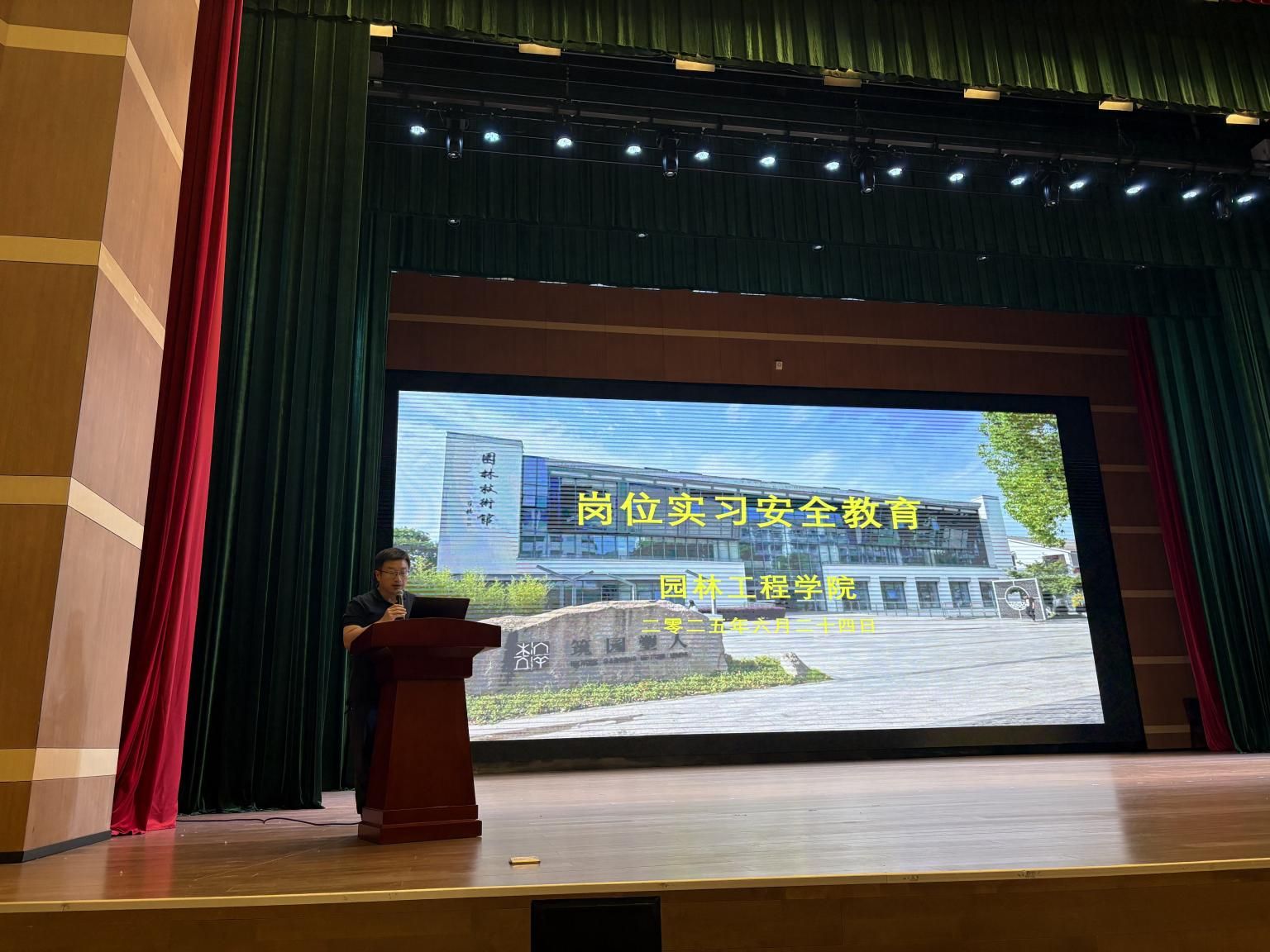 6月24日中午,園林工程學院在大學生活動中心報告廳召開2026屆學生崗位實習動員大會。園林工程學院黨總支副書記徐崢、崗位實習專員朱沛煌、所有崗位實習指導老師以及2026屆全體學生參加了此次動員大會。
