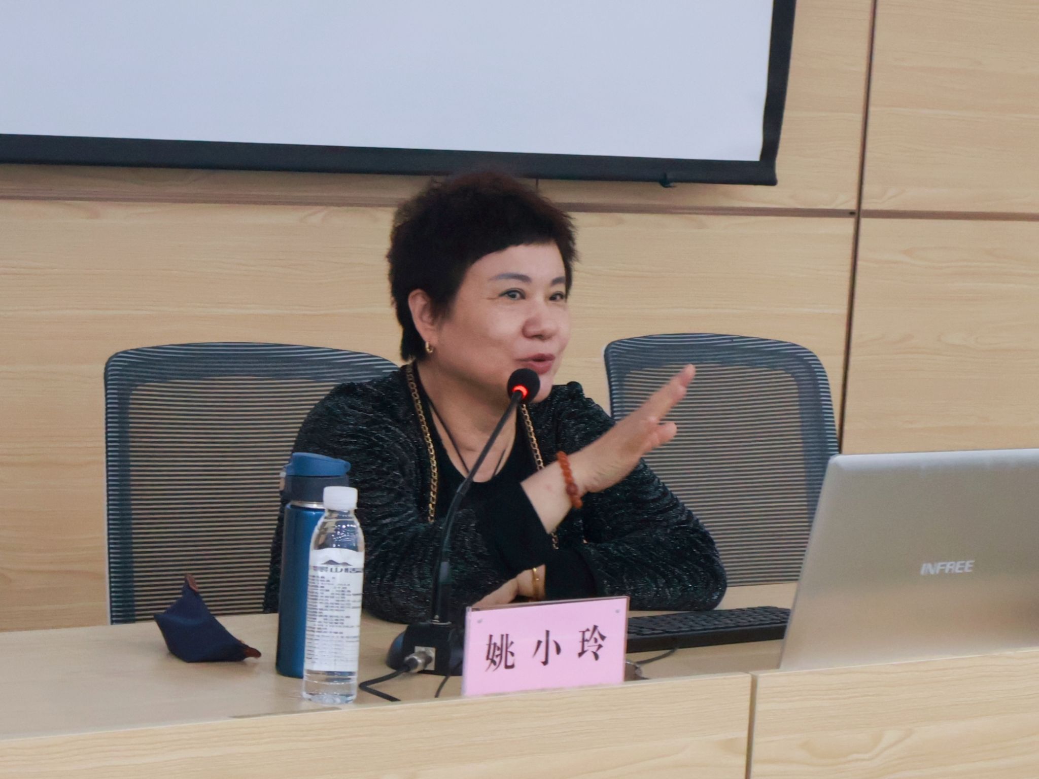 會上,姚小玲教授以教育家精神引領(lǐng)高素質(zhì)教師隊伍建設(shè)為題,帶領(lǐng)參會教師回顧了習(xí)近平總書記關(guān)于“四有好老師”、“四個引路人”、“四個相統(tǒng)一”、“大先生”、“經(jīng)師”和“人師”的統(tǒng)一者、“教育家精神”等重要論述。并對標(biāo)教育家精神,以獨特的視角,鮮活的事例,從師德使命、師德底線和師德文化三個方面深入剖析了師德師風(fēng)建設(shè)的背景和新時代高校師德師風(fēng)建設(shè)的形勢。